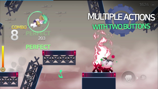 2、点击屏幕按键即可操作人物的跳跃、击打等各种动作,玩家找准时机,做出相应的应对就可以了。