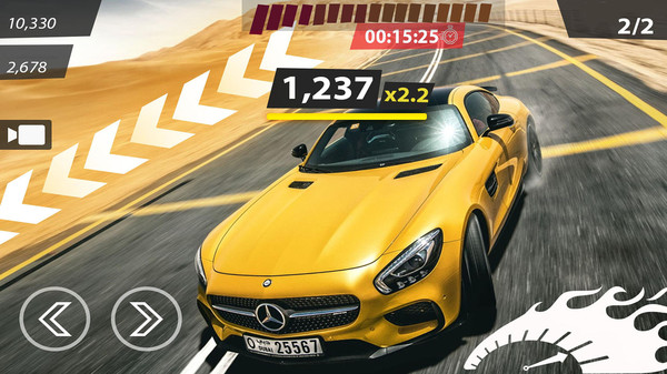 2、简单操作摇杆控制更灵活,驾驶车辆在赛道疾驰,画面效果震撼无比,动感音效让人沉浸其中。