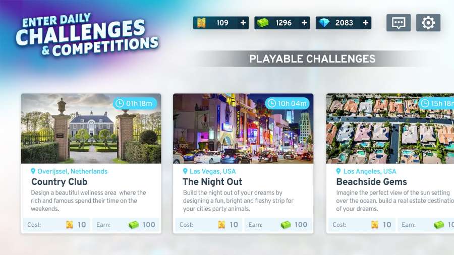 在这里玩家能够发挥想象力打造自己的城市,想要建造什么建筑都由你来定。画面相当的清新,建筑种类也是千奇百怪。喜欢建筑吗。要建造史上最棒的城市吗。在这个游戏中你可以在手机或平板上盖咖啡馆、房舍、快餐店、银行、别墅和露营公园,冲破各种纪录。吸引朋友到你的城里来,发展蓬勃的观光经济。