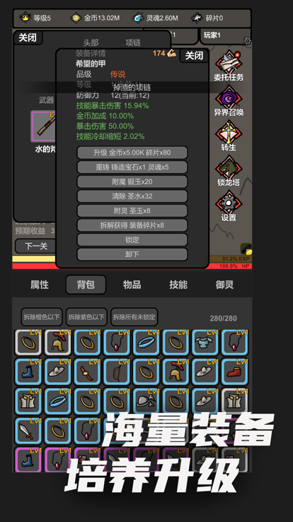 无限升级游戏ios苹果版是一款相当不错的rpg养成游戏,这里有着多样的游戏内容设置,感受轻松爽快的养成的冒险的挑战!你可以选择各种的道具,在挂机的玩法操作下也是可以爆的,以及超多的技能可以进行解锁和搭配,更多的装备获取,不断的升级,感受这里的趣味。