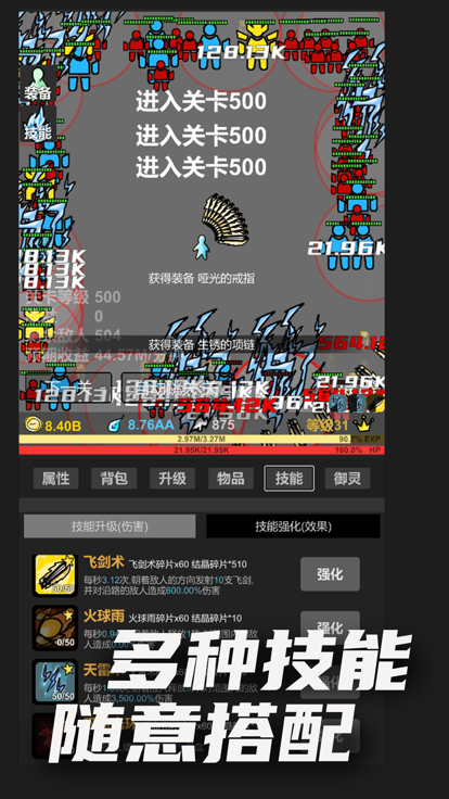 3、获取更多装备,以及解锁更多的技能,才可以不断的完成更多升级挑战。