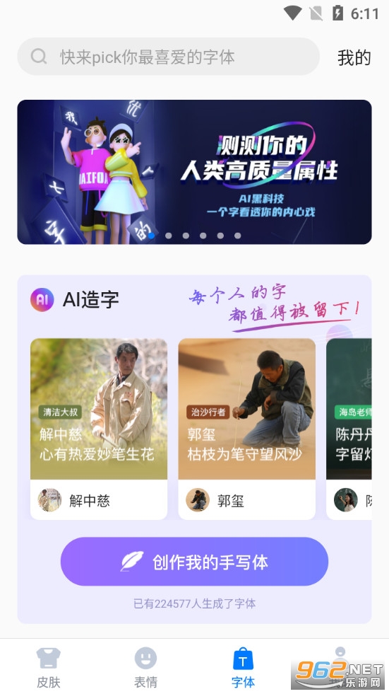 1.AI造字:仅写12字,轻松创造你的手写字体!完整7000+字库,支持输入法键盘和APP内应用