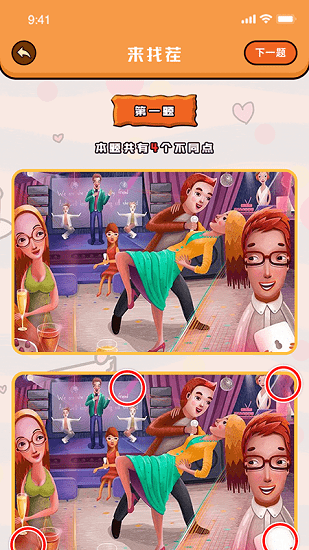 一款非常棒的找茬游戏,游戏中的图片质量都非常的好,清晰度很高,能够帮助你快速找到不同的地方,但是在后面图片会越来越复杂哦,这时候就非常考验你的观察力了。