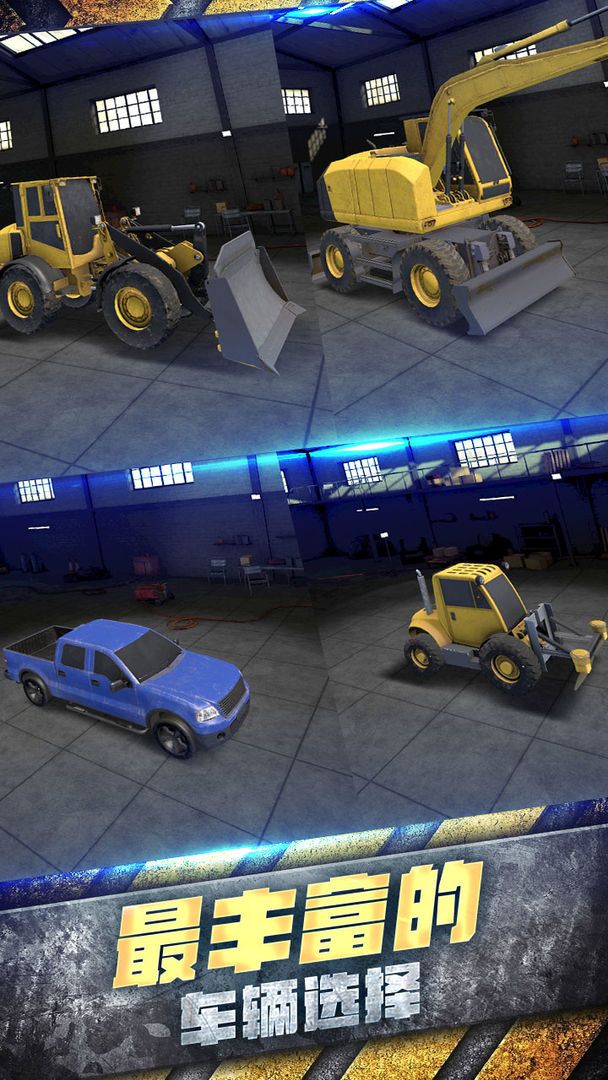 1.多种不同类型的工程车等你来选择,每一辆车都有不同的性能,能够完成不同的挑战;