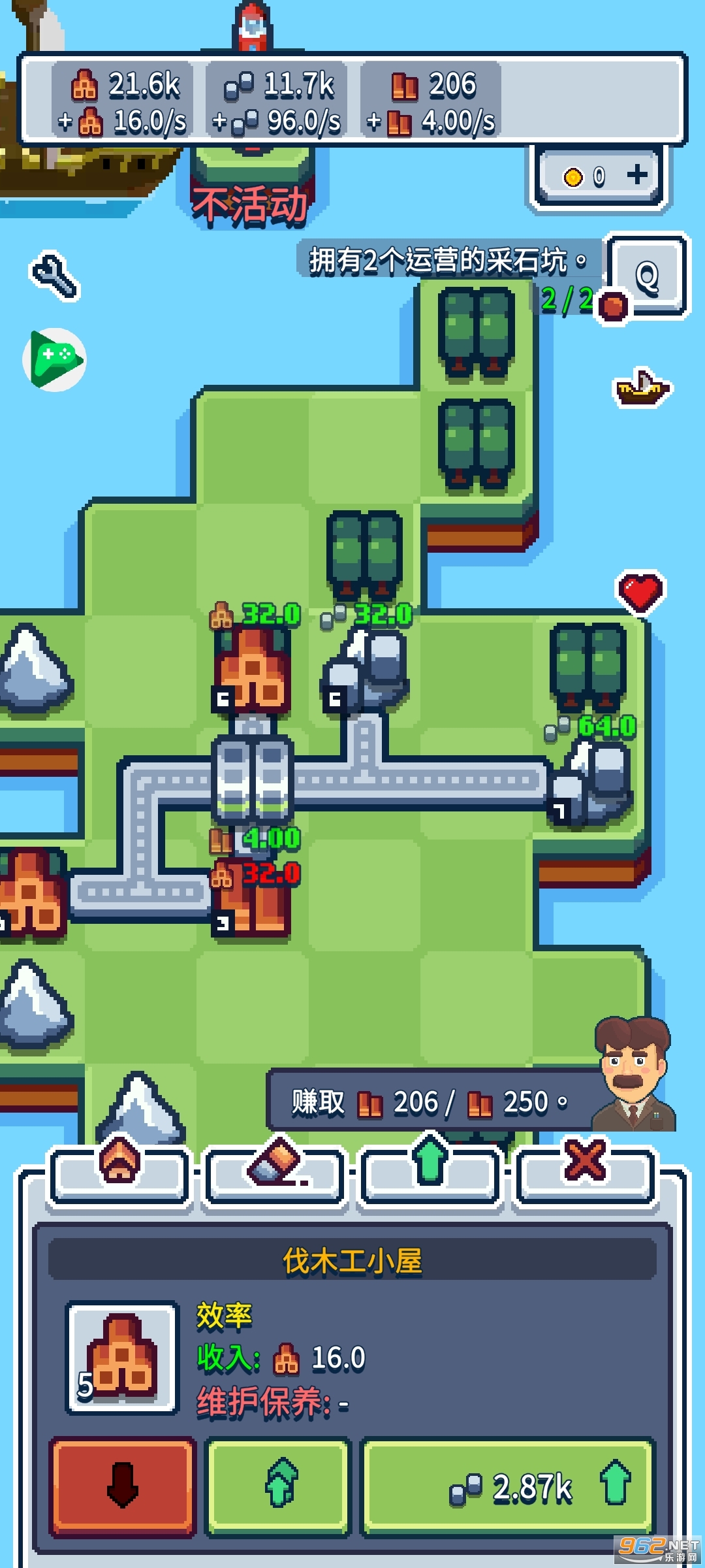 一款有趣的放置经营模拟游戏,在这款游戏中你需要合理的布置各个建筑和工厂的位置,更好的进行材料的采集和运输,在这个过程中你将解锁新的工厂和产业链,推荐给喜欢模拟放置经营游戏的玩家。