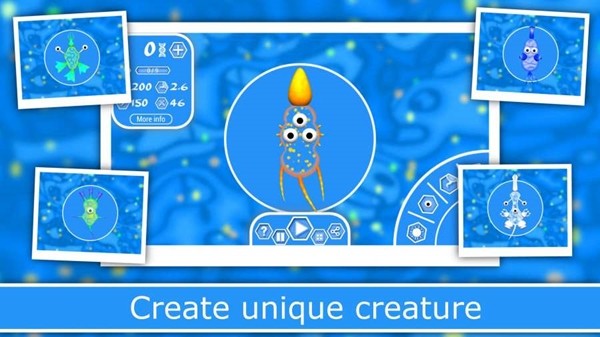 一款非常好玩的游,在这个游戏中你需要做的事情还是非常的多的,从简单的变异小虫开始做起,从小虫进化成一只庞然大物,你需要通过不断的吃多种多样的东西来生存进化,努力的进化成一个太空幻想中的品种。