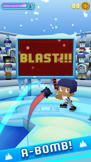 2、方块棒球游戏中需要将自己的人物击飞在这个赛道上面,在线可以一路击飞自己的对手;