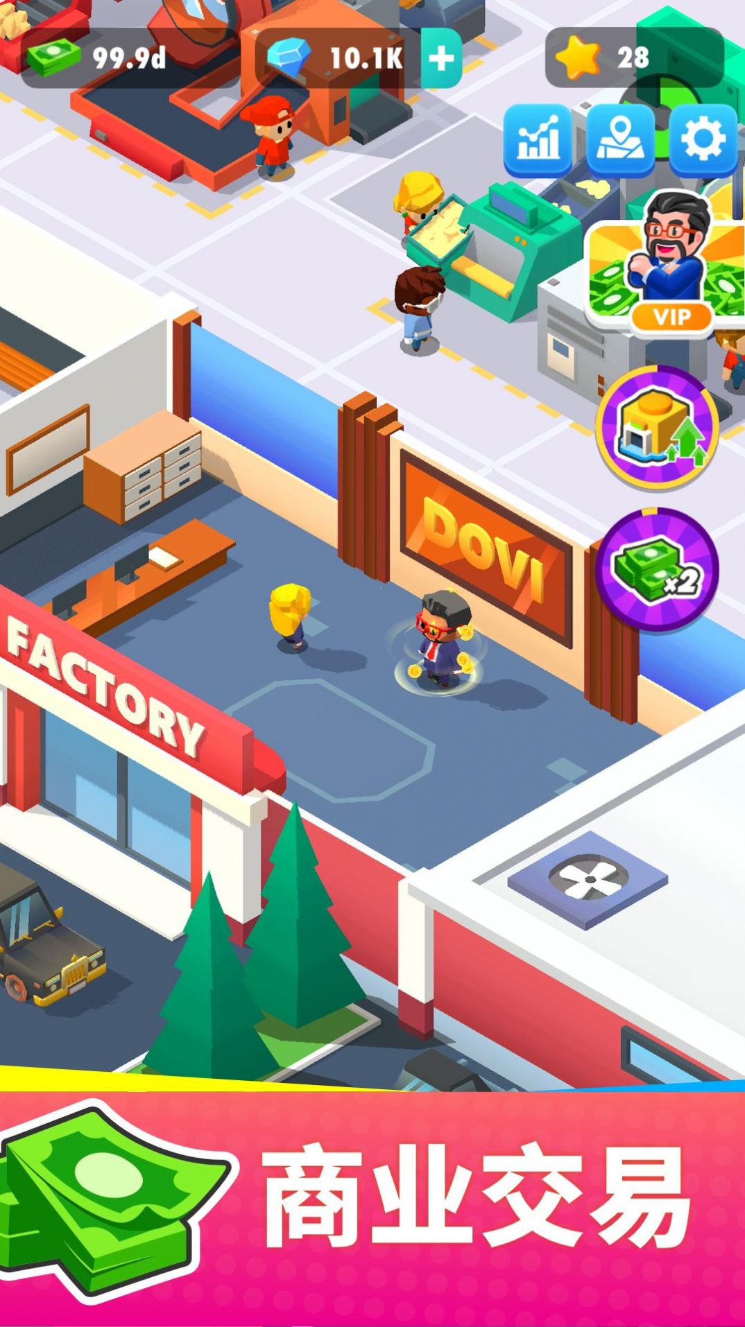 工厂经营游戏。开局继承一个土豆加工厂,需要玩家去经营工厂、扩展规模、雇佣工人,为游戏中的世界提供土豆原料,游戏中也会获得丰厚的报酬,快在游戏中发展自己的商业帝国吧!