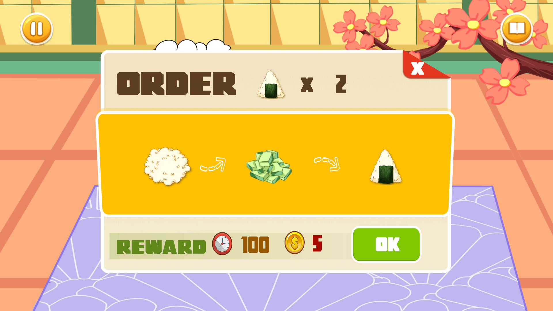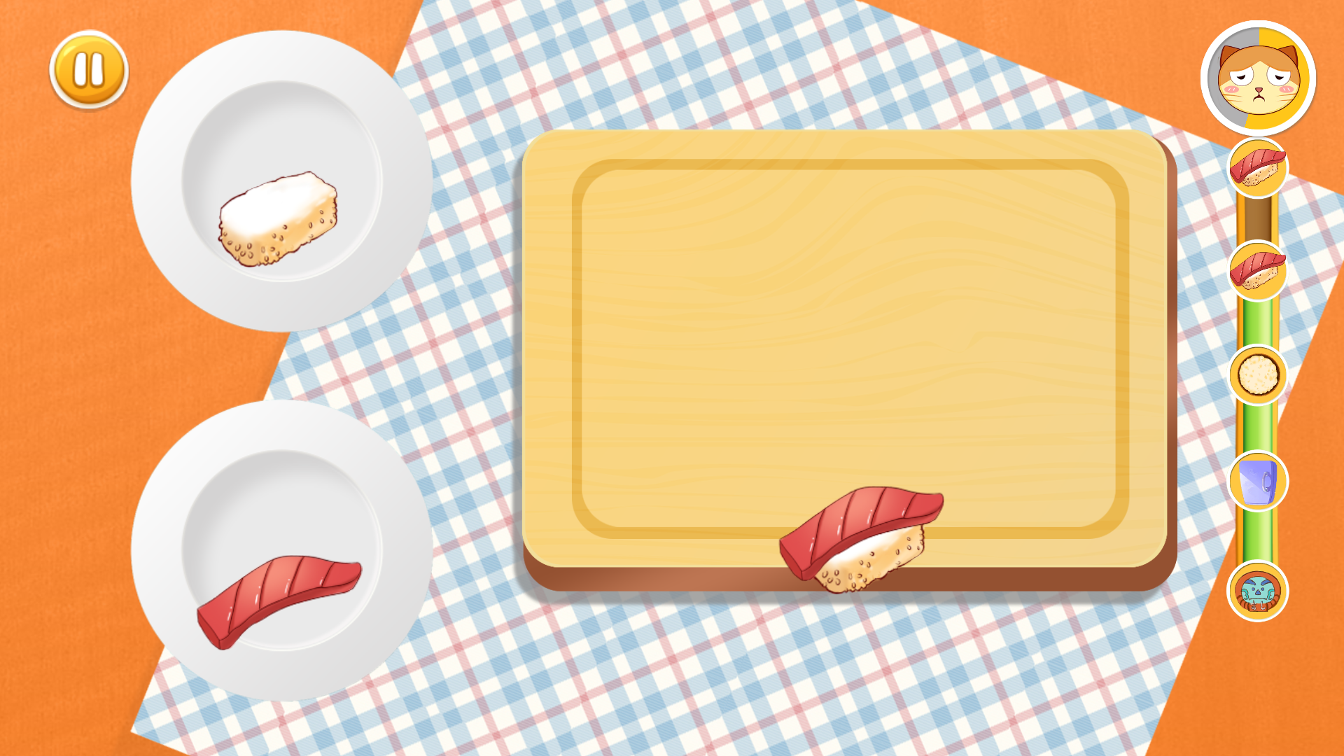 4、寿司食材的摆放位置和你制作所用的时间将影响你的成绩;