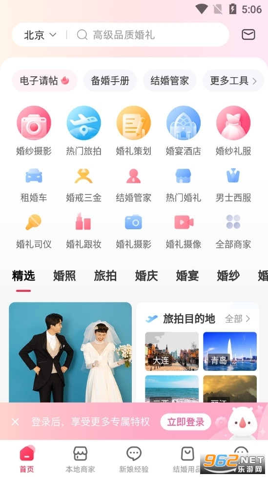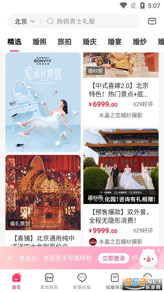 全国2万个商家入驻,占领全国一线城市,10万套婚纱款式,精选百万婚品,只为做专业的一站式婚礼服务平台