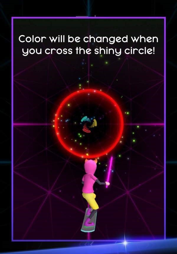 1、根据音乐的节奏和游戏中颜色的变化来控制角色的方向;