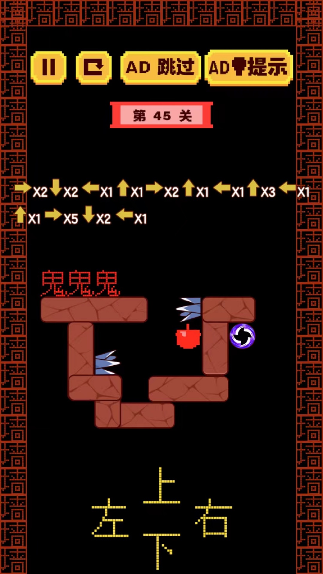 2、吃掉苹果然后通过关卡传送点就能过关了,玩家可以多思考一下哦。