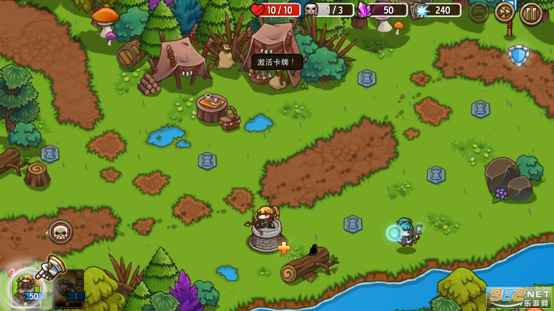 3、使用防卫塔卡片去防守战略性控制点,及使用咒语卡片去把那些坏蛋炸个稀巴烂。