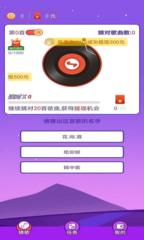 多赚宝红包版是一款十分有趣的猜歌赚取红包的休闲小游戏。在整个软件之中有着众多不同的猜歌玩法等待着你的体验,完成各个关卡之中的猜歌挑战,快速的让自己猜出对应歌曲的信息,是自己的角色能够在最短时间之中获取最高积分,兑换各种各样大额度的红包。