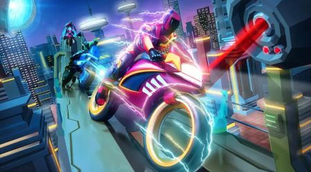 《赛博摩托竞赛中文版》是一款融合赛博元素