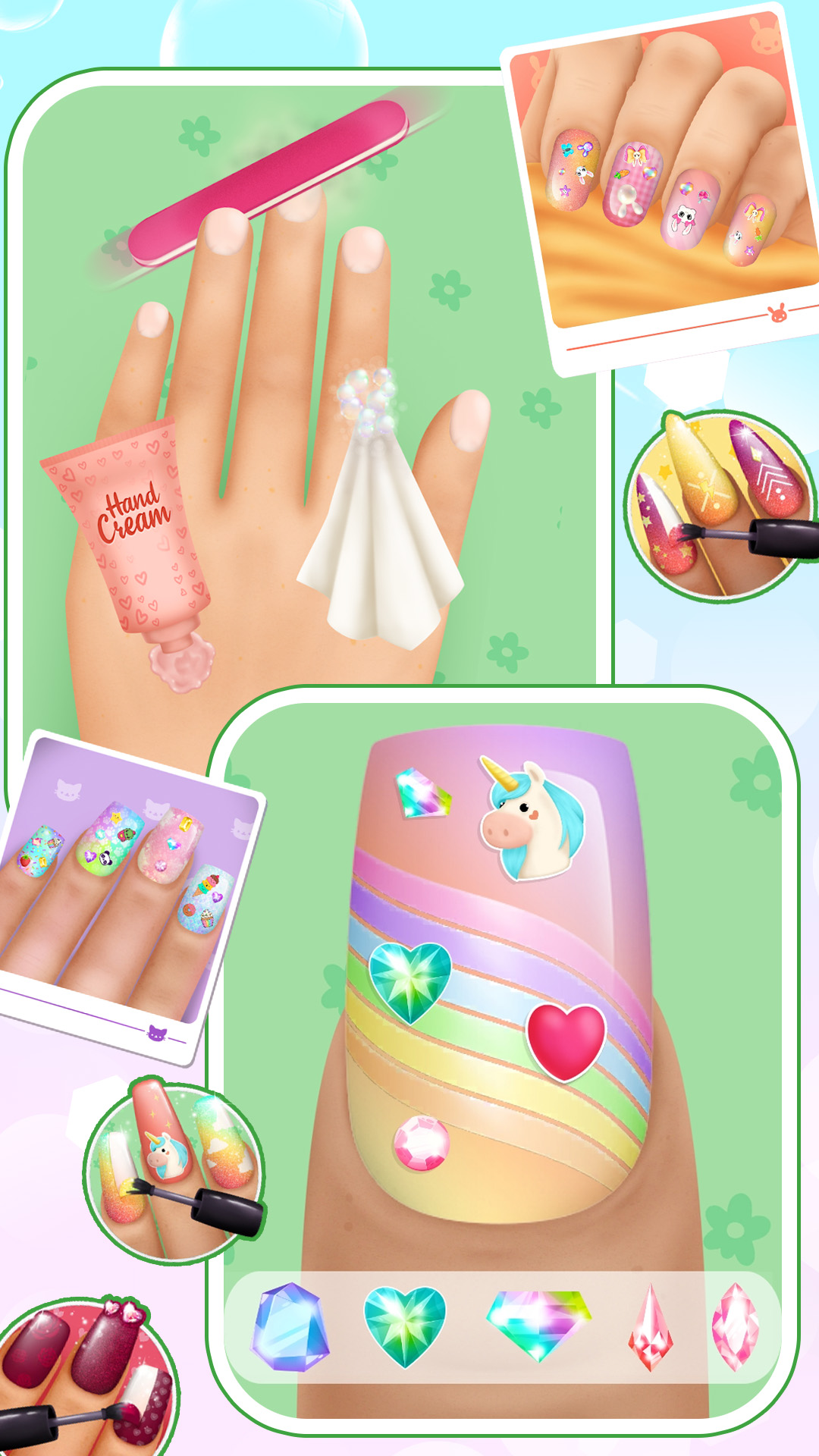 奇妙公主梦幻美甲屋开业,快来精心装扮你的指尖。形状各异的指甲,色彩绚丽的指甲油,百种不同风格的花纹,以及各种戒指、纹身贴、手镯配饰……将美丽把握在手中。多种不同的主题,如圣诞主题,兔子主题,大熊猫主题......等你来搭配!