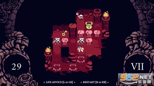 某一天,你作为一个冒险者从梦中醒来,发现自己所处地狱之中,而地狱中还有很多的恶魔女孩,你要做的就是运用你无穷的智慧与勇气,通过一道道难关,救出恶魔女孩并俘获她们的芳心。