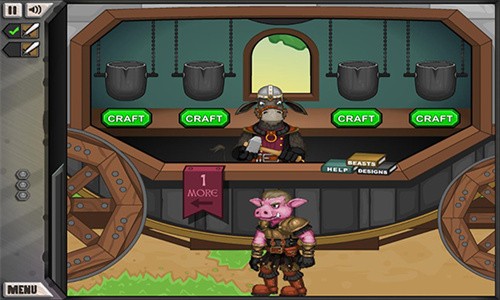 游戏里玩家的任务就是根据顾客的需求、精益求精地为顾客们打造武器,在一次次捶打中提高自己的锻造技术,造出一件件神兵利器,并且通过与怪物战斗赚取更多金钱。玩家能够亲手参与武器打造的环节,你所打造的武器还将会影响到勇士的战斗力,勇士的战斗力则决定着它们是否能完成关卡,得到最后宝箱里的稀有图纸。不同材料所打造的武器伤害不同,同时各种配件也会给武器带来一些额外的加成,建议玩家每关尽量使用最好的材料来打造,因为只有宝箱里的图纸才是玩家最需要的。