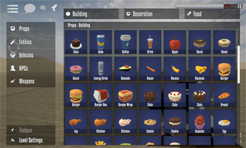 游戏的玩法很简单,其实跟我们平时玩的沙盒类游戏差不多,它里面会给我们大家提供各种各样的道具,小到木桶、石头啥的,大到各种汽车,应有尽有。游戏玩起来也是很自由的,玩家用户在其中可以合理地运用这些道具,在你喜欢的一张地图上面,完美创造出一个属于你的世界。这个世界可以只有你一个人,也可以满是人类,还可以全是僵尸,总之随着你的爱好,想怎么来就怎么来!