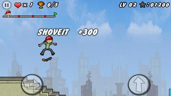 游戏的得分是基于特技点数和距离,所以获得高分是件好事。操作按钮很小,因为滑板的一些动作是角色本身的动作,你可以掌握平衡。