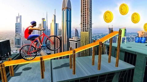 模拟飞行单车是一款采用3D技术制作的自行车驾驶类游戏,我们可以驾驶自行车完成各种精彩有趣的特技骑行比赛,这里有非常炫酷的赛道地图可供选择,在高空完成各种危险的特技骑行任务,这样才可以穿越弯道,保证自己的安全,完成自由漂移,轻松的赢得更多的对手。
