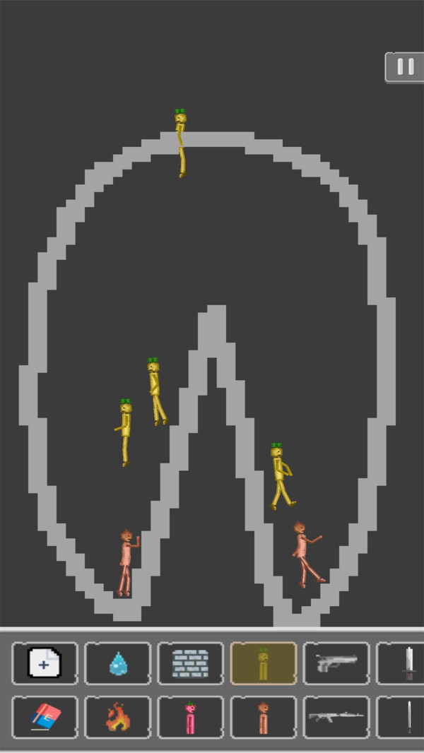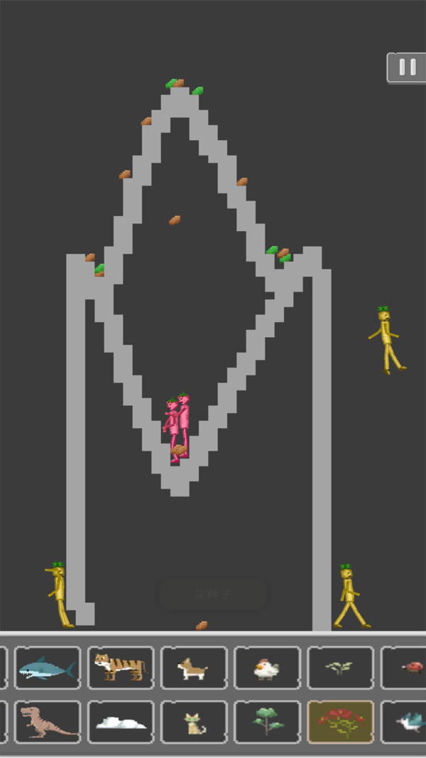 2、向由你创造的世界中投入菠萝人偶,让他们展开生存冒险。