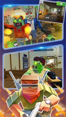 游戏画面采用3D像素风格,多模式关卡可以自由选择挑战,自动射击战斗,完成各种冒险任务。