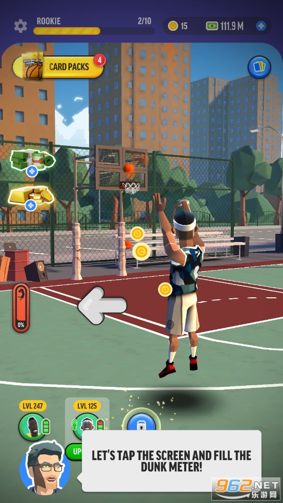 一款有趣的放置大亨类游戏,万物皆可放置,玩家将在球场上收集各种各样的nba球星来进行练习,不断的进行投篮来获取收入,游戏的操作简单容易上手,还有着超多的角色等你解锁,享受轻松的放置玩法。