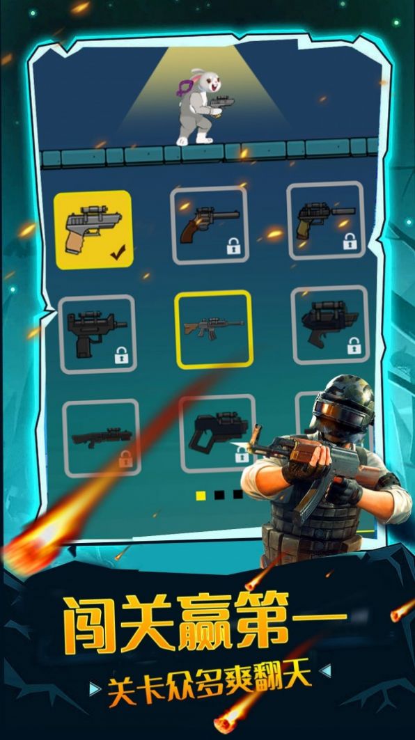 1、卡通题材的射击闯关游戏,这里的角色是各种各样可爱的小兔子。
