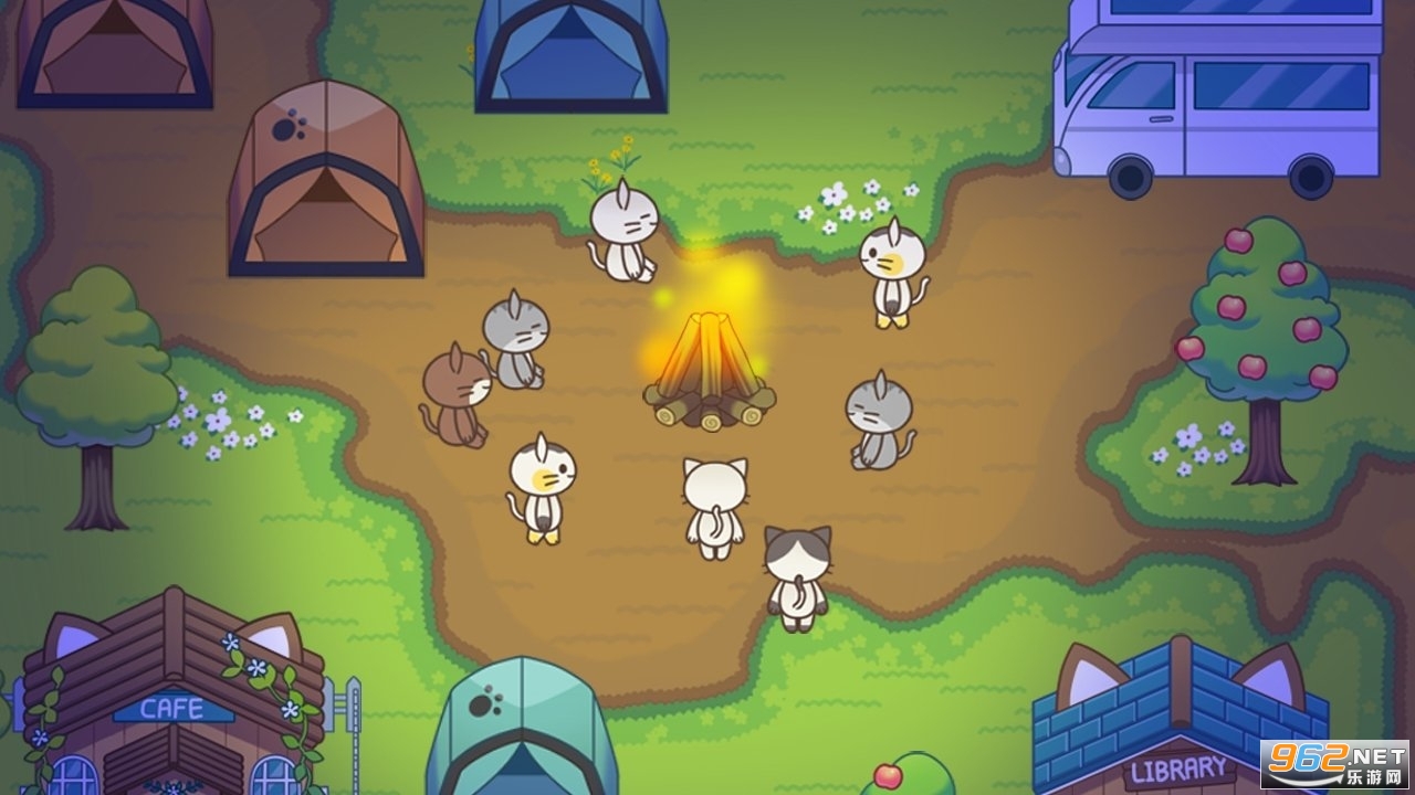 《猫咪森林治愈露营》是一款清新卡通风格的