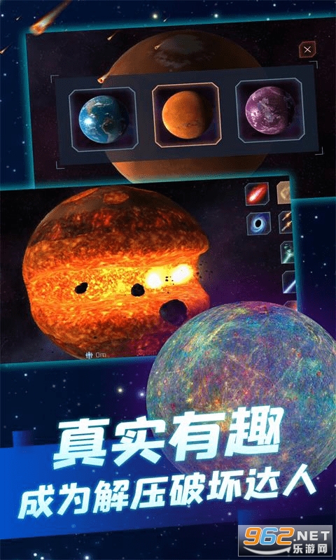 2、星球爆炸效果十分独特,带来精彩破坏玩法,释放心中的烦闷与压力;