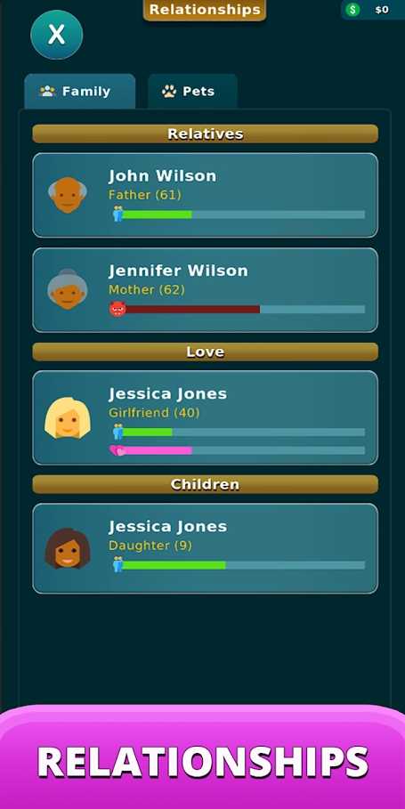生命模拟器玩起来非常的有代入感,并且拥有沉重的人生意义,操作玩法简单轻松上手,多样的玩法设定,带给玩家更多的趣味感受,随时随地畅玩。