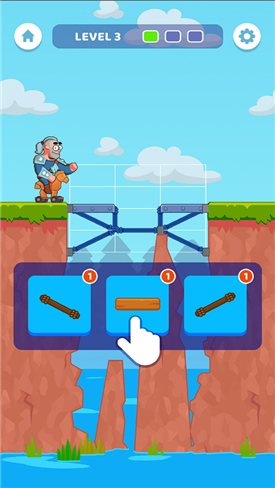 2.角色若能成功走过桥梁且不掉落,则闯关成功,解锁下一关。