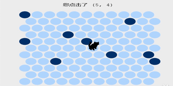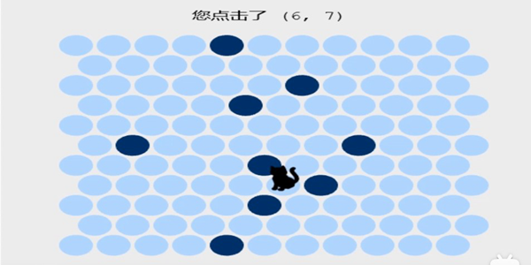 3、只不过在这里你需要通过下棋子的方式来圈住小猫,不让它从棋盘的边缘逃脱,你没走一步,小猫就会移动一步!