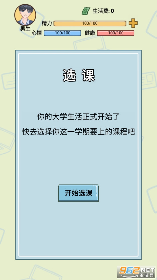 这是一款模拟大学生活的游戏,可以让你体验到真实的大(挂)学(科)生活!