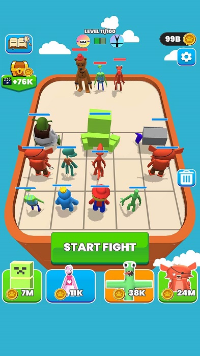 1.每个角色都有不同的技能设计。组成强队,在自走棋比赛中击败所有对手。