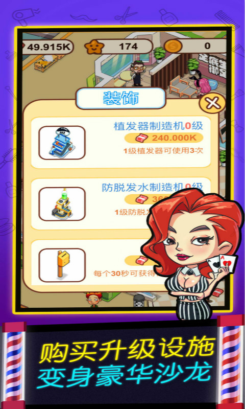 我爱洗剪吹游戏是一款采用简单卡通风格图形打造的趣味美发店经营模拟游戏。在这个美发店之中每天都有着很多有趣的东西发生着,我们可以进入到美发店之中展开欢乐好玩的互动比拼,招募更多技术高超的托尼老师来你的美发店工作,使你的美发店更加火爆。