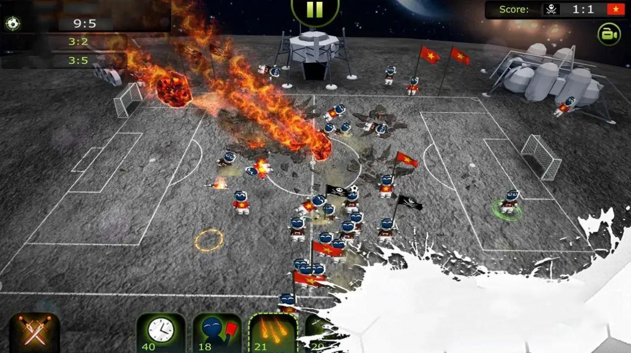 2、可以使用雷电、火烧来干扰对手进球,还可以放置太空飞船下落小动物;