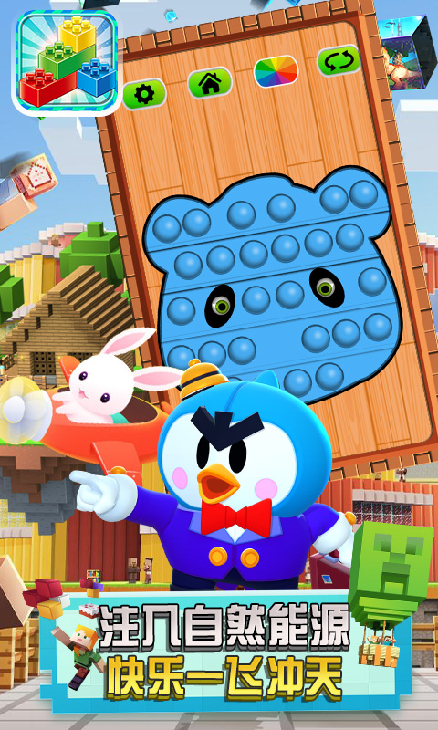 2、多种多样的积木搭造出不同的游戏世界,也能带来多种的关卡挑战。