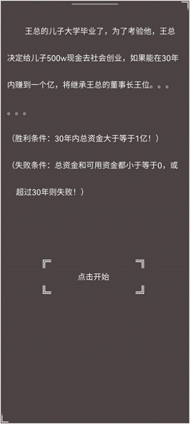 1.轻松挂机赚钱。选择每一个情节,看能不能实现你的小目标。