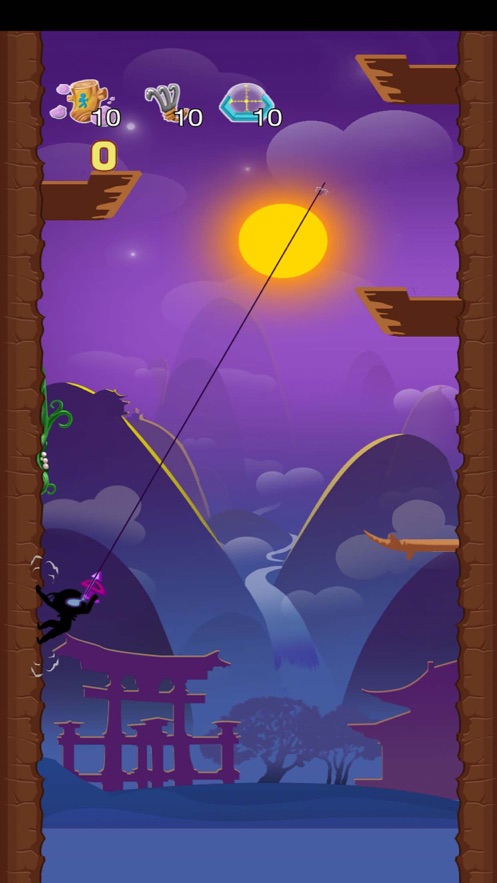 飞天忍者2021游戏是一款趣味十足的休闲跳跃游戏。操控你的忍者在左右横跳的过程中向上前进,手中的钩锁必须有节奏的收缩释放,玩法可以说是非常简单的,但是对于钩锁释放的判定却是一个难点,想要攀登到更高的地方可并非那么容易,不信的话,就来挑战试一试吧!