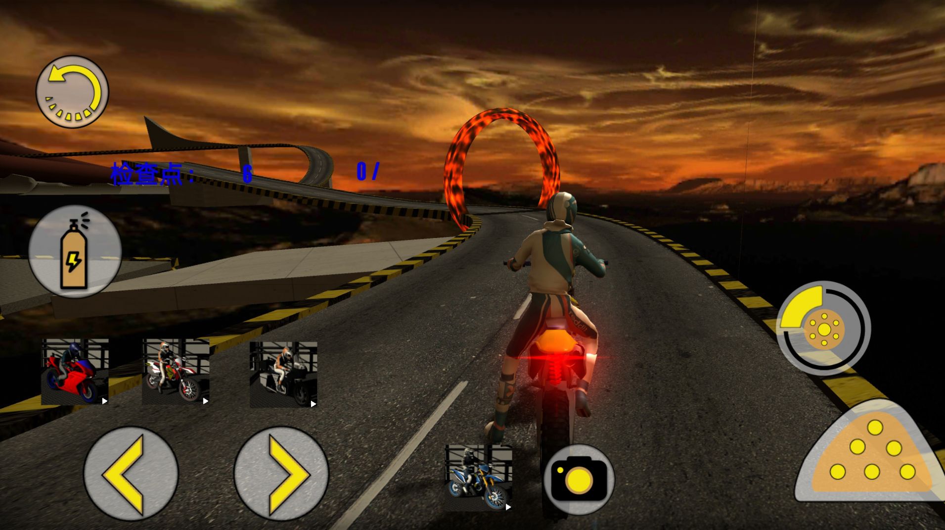 1、在这里大家可以驾驶摩托车自由的漂移竞速,完成各种的竞速挑战。