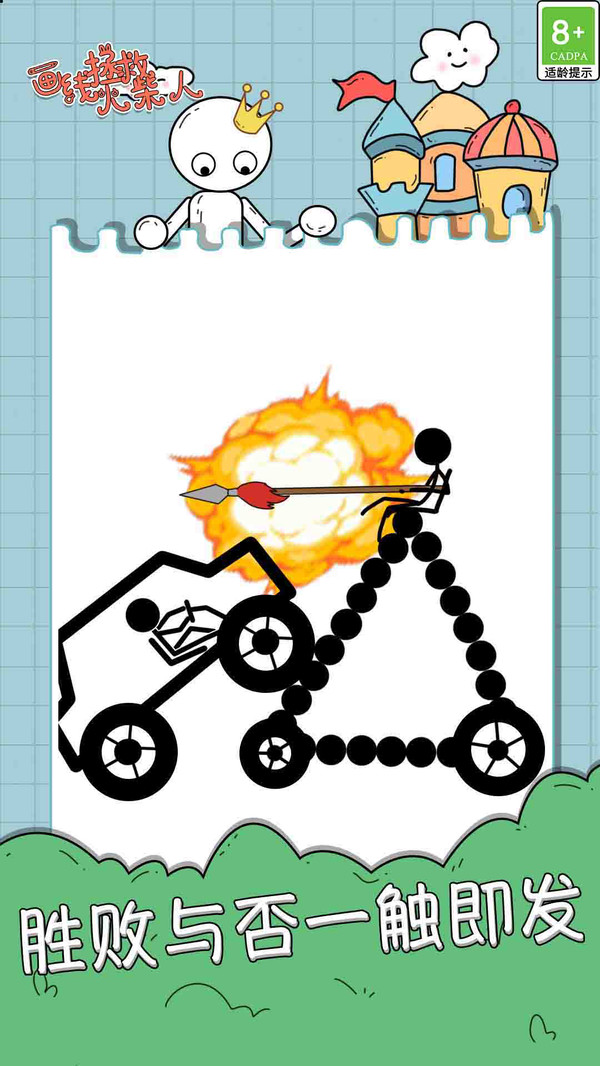 1、以火柴人为主角的简笔画式画风,简单中蕴藏着无限的乐趣。