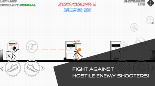1、不同寻常的枪战射击游戏,只要玩家们不断点击左右屏幕即可,超级简单的操作。