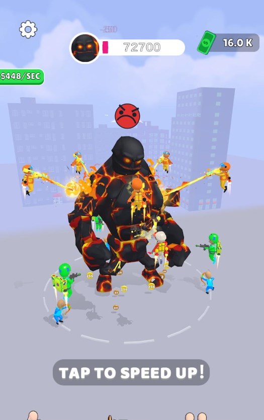 1、点击屏幕就能加快速度哦,快来与怪兽战斗吧。