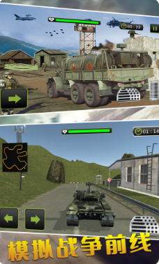 你需要驾驶各种不用的军用车辆,军用卡车,吉普车,坦克等特种车辆,穿越森林,上山,穿过敌区,将各种物资送到目的地。