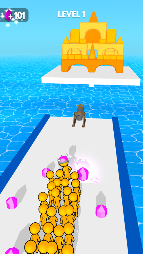 Crowd Battle 3D破解版是一款趣味性挑战性十足的休闲闯关游戏。带领你的军团在充满各种陷阱的跑到上奋勇向前,你会遭遇炮弹的攻击、橡胶人的抵抗,你的军团人数会不断减少,你面临的挑战会越来越棘手,不过哪怕最后只剩下你一个人也必须勇敢冲刺到终点呀!