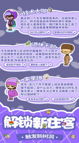 2.游戏有一个完整的故事情节。玩家可以与居民自由交流,并根据他们的意见进行一些改造工作。
