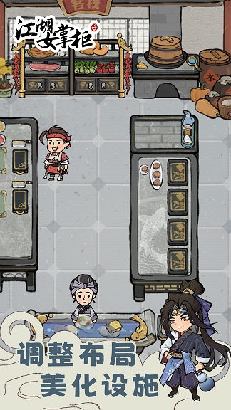 在武林外传还非常兴起的时候,想必有很多小伙伴都想成为像佟湘玉那样的女掌柜吧,那现在机会来了,在这款《江湖女掌柜》游戏中,玩家就作为一名女掌柜来管理和建设自家的客栈,玩家需要不断的完善客栈的配套设施,以及聘用名家大厨,来帮助客栈吸引更多的客户,赚取更多的收入。