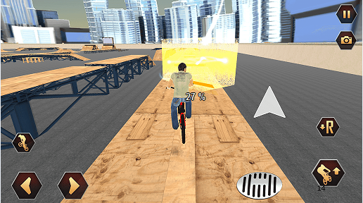 可以在大坡道、半管道和奇特轨道上疯狂跳跃骑行,获得骑车者积分。